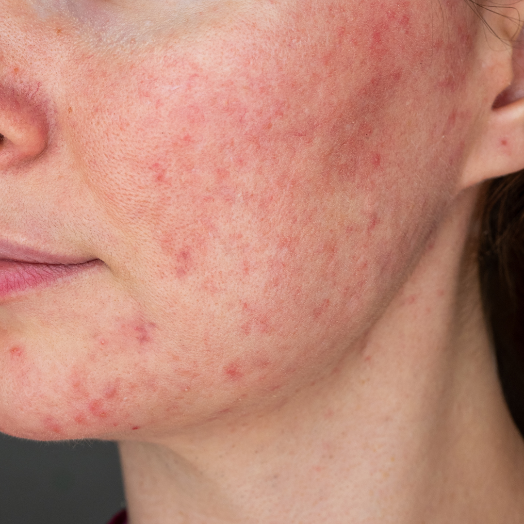 Rosacea is een chronische, ontstekingsgerelateerde huidaandoening die voornamelijk het gezicht aantast. Het kenmerkt zich door roodheid, zichtbare bloedvaatjes, bultjes en soms zelfs puistjes. Hoewel rosacea vaak begint als een tijdelijke roodheid die komt en gaat, kan het in de loop der tijd verergeren en leiden tot blijvende huidveranderingen. Rosacea komt het meest voor op de wangen, neus, kin en voorhoofd.